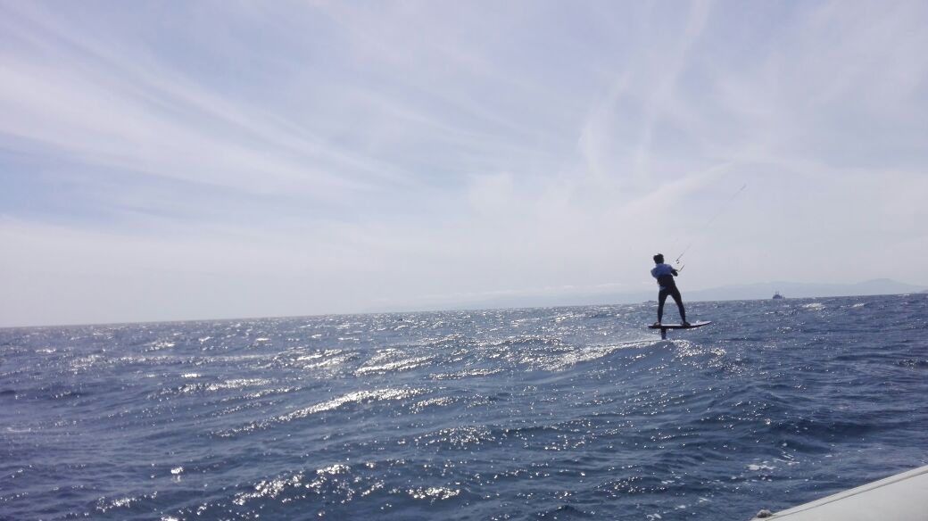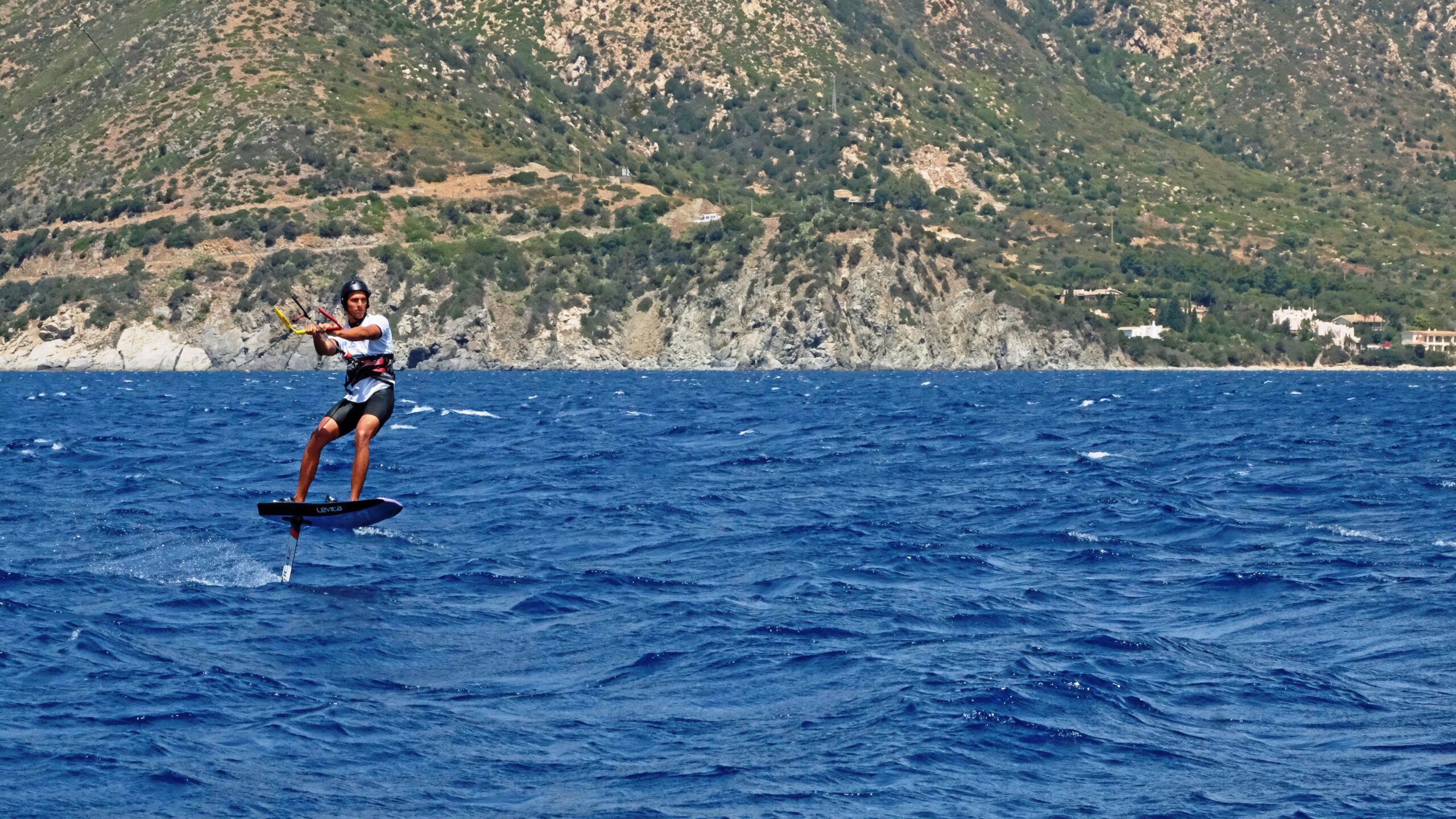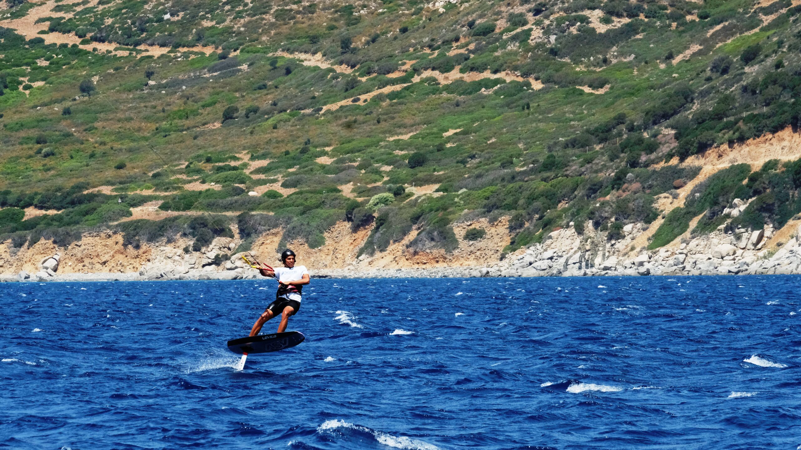 Dopo un paio d’ore di kite, al momento di prendere la via del ritorno verso Cagliari, Lucas ha detto: “Dai, torno in kitesurf e con la tavola foil. Fino a Capo Boi pare ci sia Grecale, ma verso Solanas / Geremeas dovrebbe girare a scirocco”.
